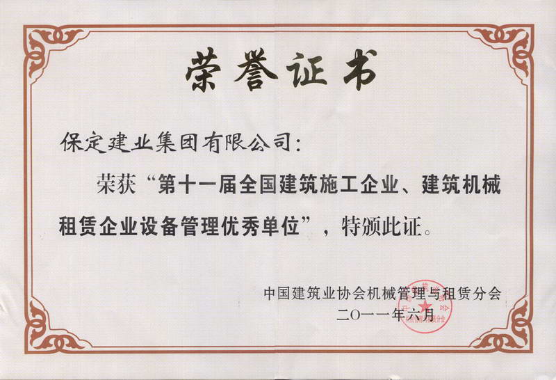 2011全國十一屆機械租賃優秀企...