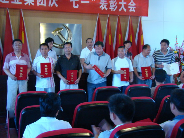 為迎接建黨八十八周年, 2009年6月29日上午,集團公司黨委在六樓大會議室舉行了隆重的慶“七一”表彰大會,對在過去的一年中,集團公司各方面工作中涌現(xiàn)出來的先進黨支部、優(yōu)秀共產(chǎn)黨員、優(yōu)秀黨務(wù)工作者進行了表彰。